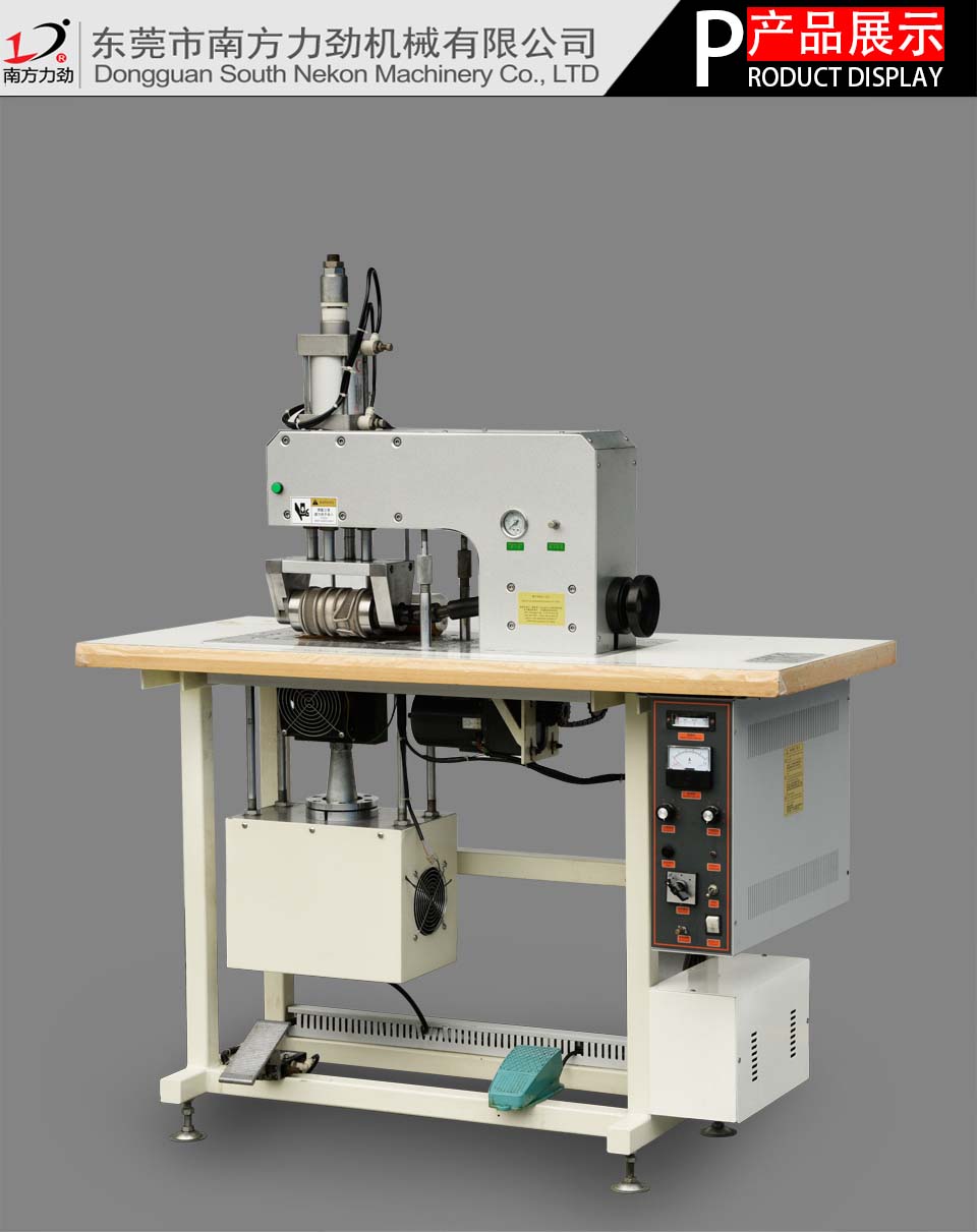 6.超聲波花邊機利用超聲波直接在材料上進行包邊,燙金,壓制圖形,根據不同面料、厚度調節功率。