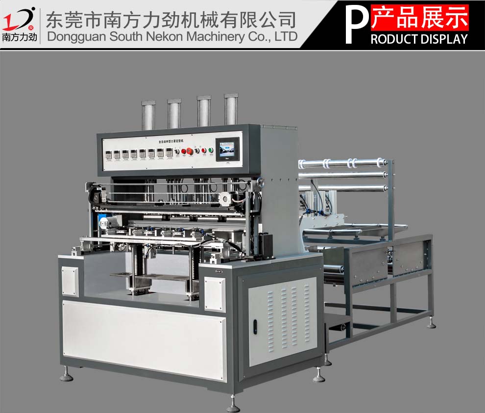 南方力勁全自動杯型口罩成型機利用高溫熱壓成型原理使工件結實成型。該口罩成型機可以自動完成從送料,到同時成型、剪切以及退料等多道工序,相比傳統的人工送料、退料、剪切可以省去3-5個人工,每分鐘可生產口罩30-36個,采用PLC控制系統,觸摸屏設置,操作簡單快捷,可單人單機使用,人工放料及取料。增添生產效率。